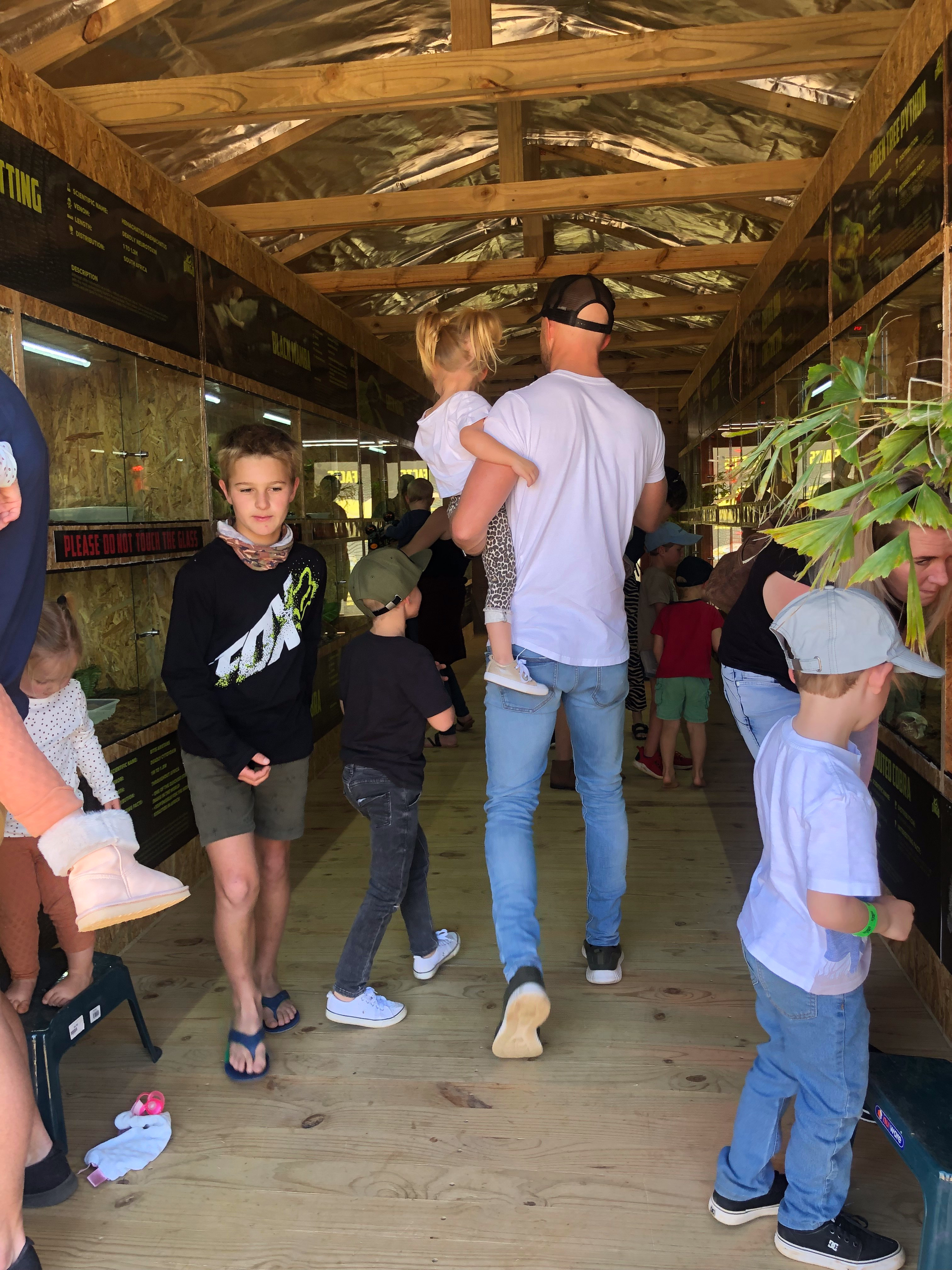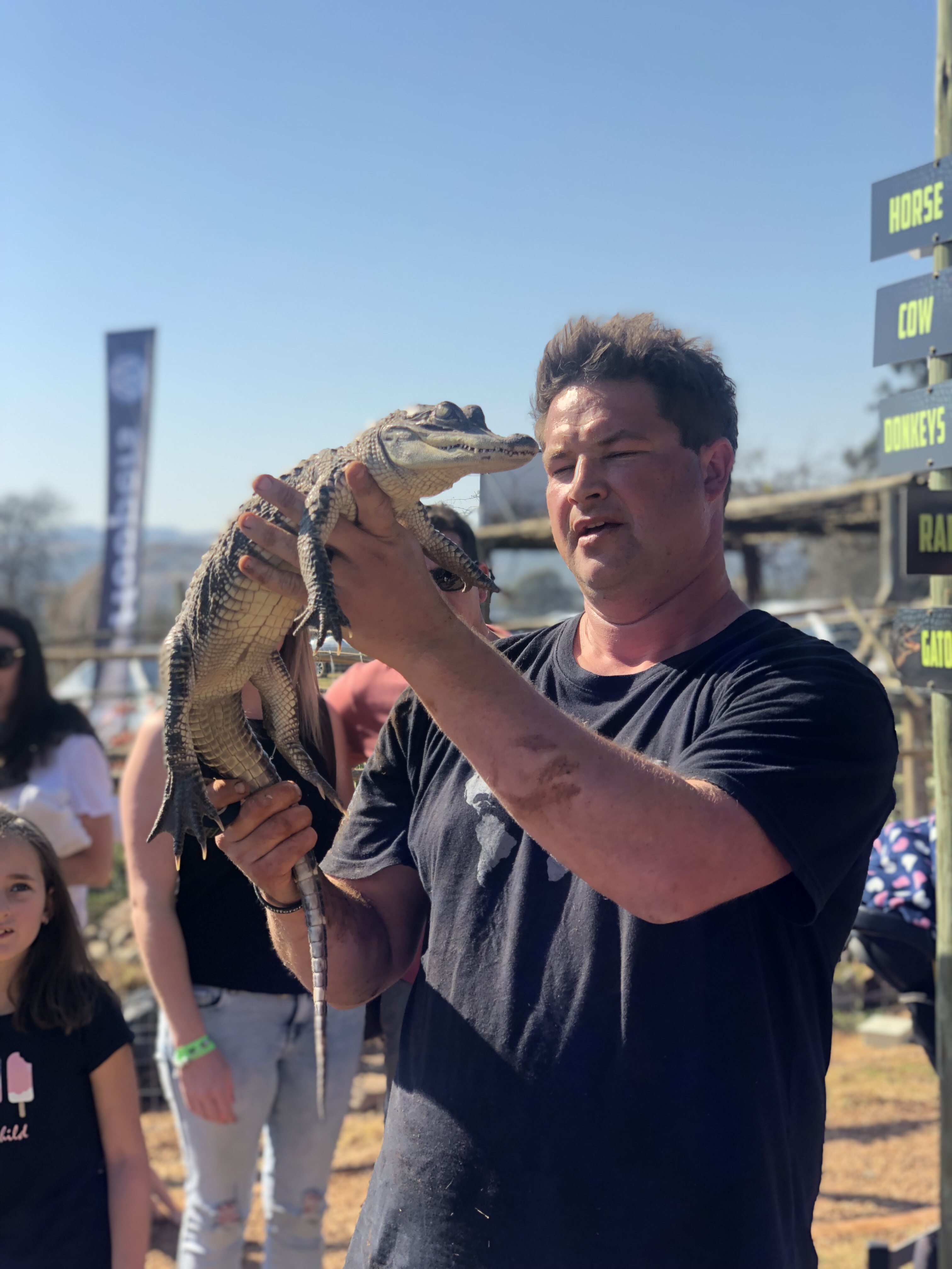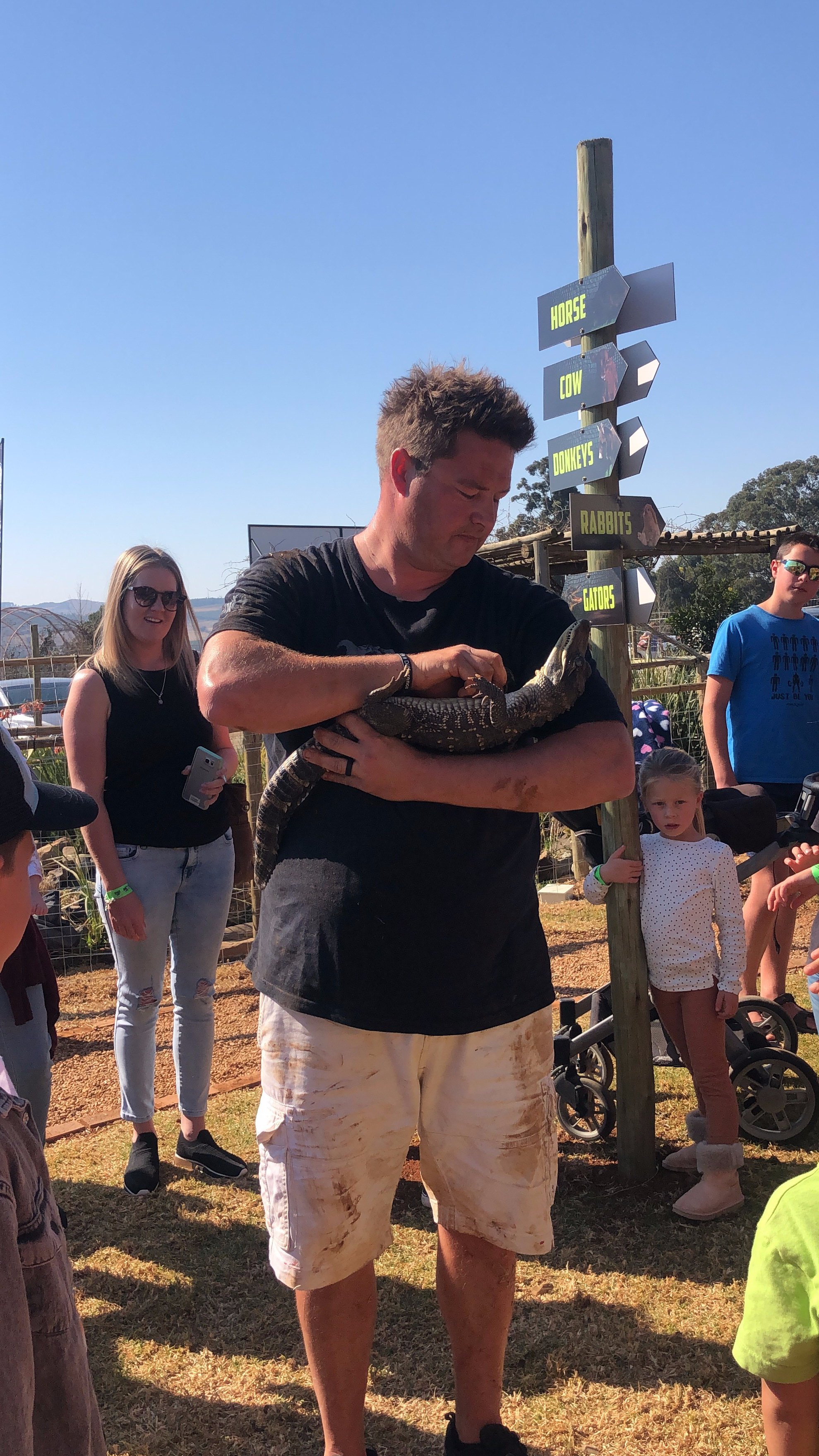 Sunday morning the boys made coffee & tea and Caley & I enjoyed a cuppa in bed with the babies putting on a show for us (cutest little characters at the sweetest age!!), while the guys made a fry up. We then packed up and made our way to Piggly Wiggly. Someone told us the “animal farm” there had a demo at 11am which we aimed to make. After pre-booking our table we went across to the farm and wow! Dingo’s Farm & Reptile Park is so awesome! Dingo and his son informed us all about alligators 🐊 and their love for animals is so clear. A real treat for all of us, with American Alligators (which we could touch), miniature goats, bunnies, donkeys & snakes… not that I’m a fan of those 😱