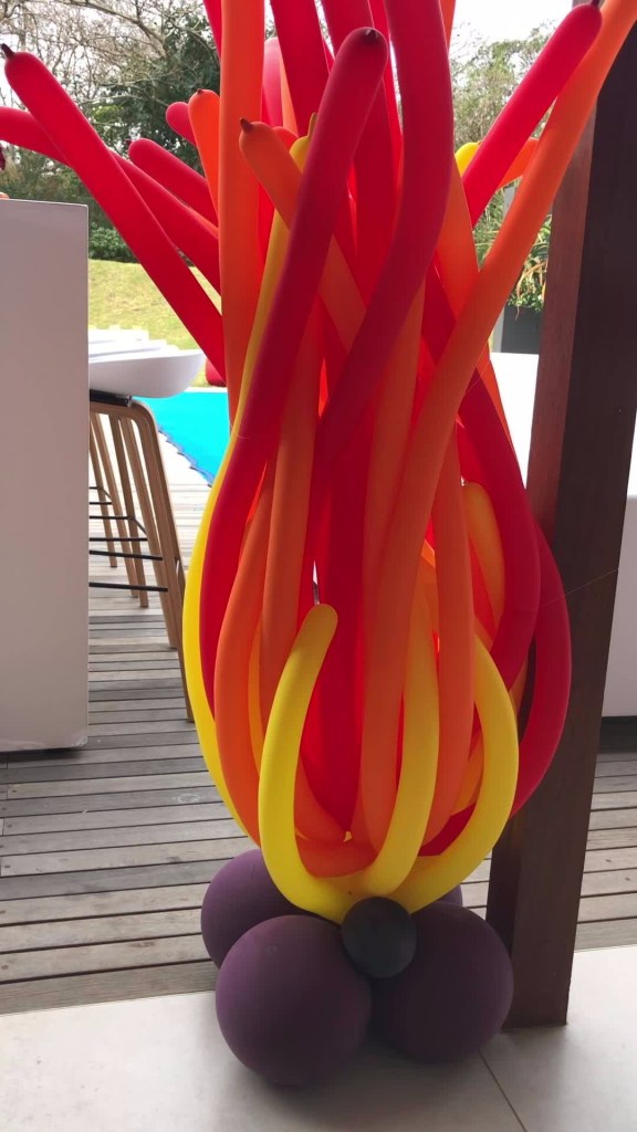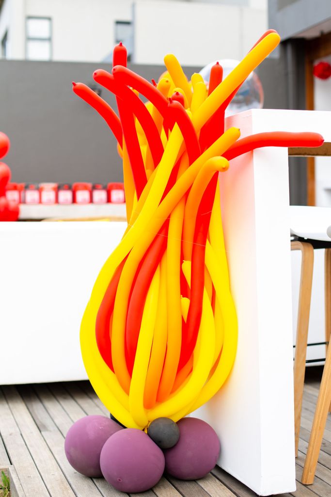 After browsing Pinterest I found an amazing picture of a flame created with long balloons. I sent the pic to Tash (POSH) who said she had already seen it and sent it to Taryn (Yes, I told you Tash is next-level amazing!!), and she was waiting to hear from Taryn as to whether she could recreate the masterpiece. Taryn’s response: let’s do it!